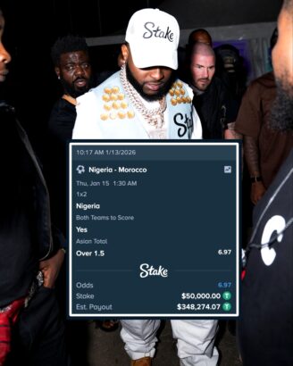 Before kickoff, Davido had taken to his verified X (formerly Twitter) account to share a screenshot of his betting slip, revealing that he staked $50,000 on Nigeria to beat Morocco, with both teams expected to score.