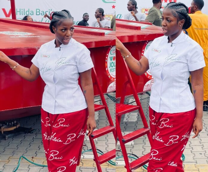 Celebrity chef Hilda Baci on Friday commenced her attempt to cook the world’s largest pot of jollof rice at the Eko Hotel Car Park B in Lagos.