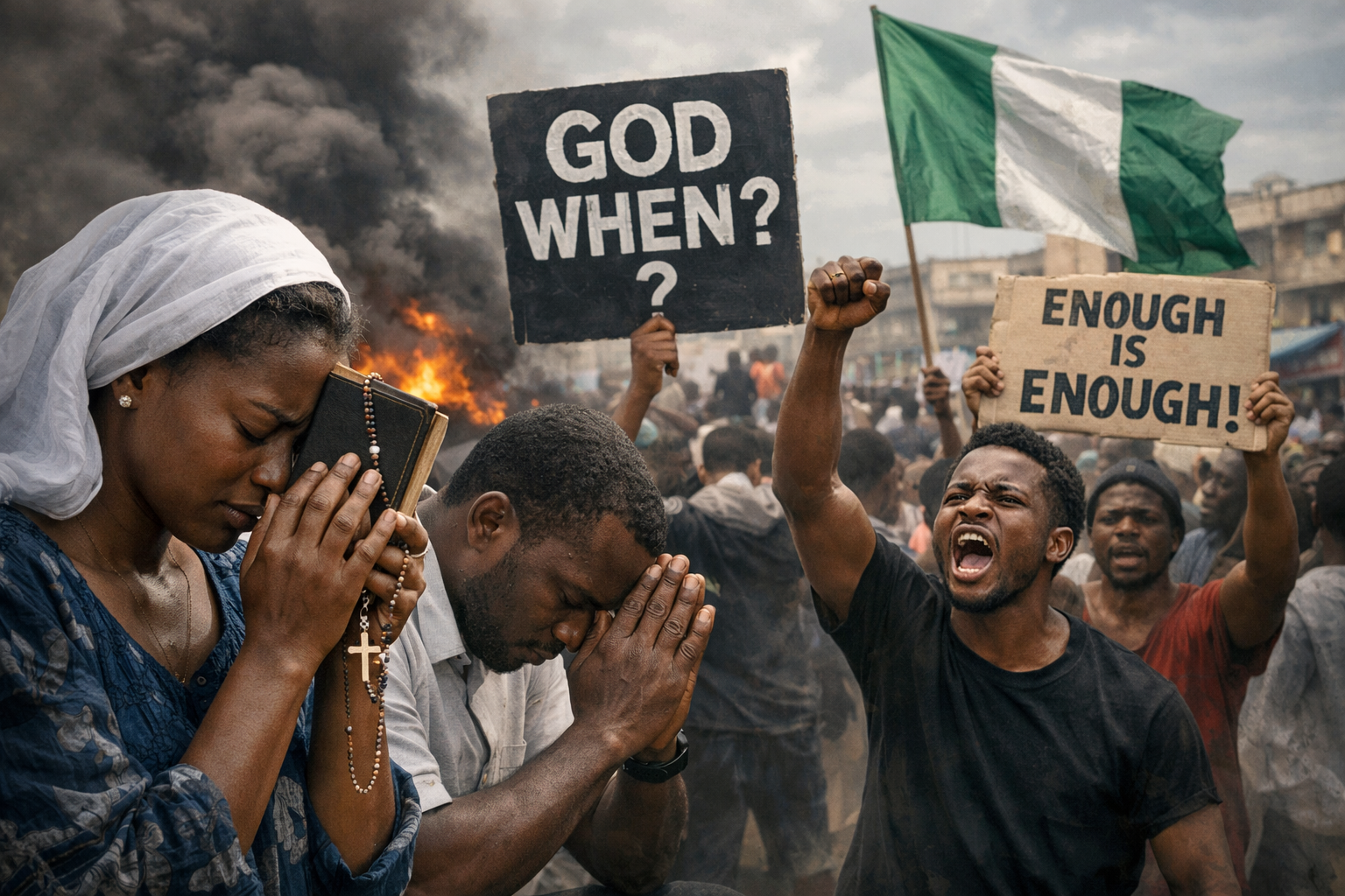 In Nigeria, the question “God, when?” is whispered in churches, shouted in protests, and scrawled across social media feeds. It is more than a question; it is a reflection of the tension between unwavering religious faith and a pressing need for social action. Nigerians are navigating a reality where praying for justice often exists side by side with marching for it, revealing a society where spiritual belief and civic engagement are constantly in conversation.