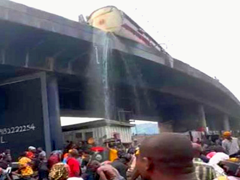 Confirming the development in a statement, the Special Adviser to the Lagos State Governor on Transportation, Mr. Sola Giwa, said the situation posed a grave fire risk, particularly as the highly flammable product spilled from the elevated bridge to the area beneath.
