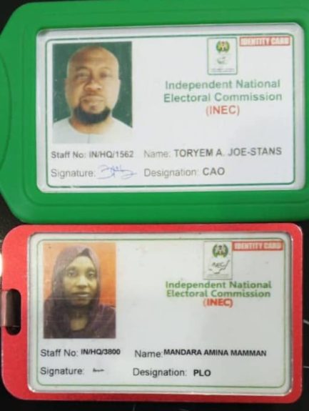 The officers stopped a Mitsubishi Spacewagon with registration number LAGOS AKD 887 HT, occupied by INEC staff members, Mr. Toryem Joe-Stans and Ms. Mandara Aminat, alongside their driver.