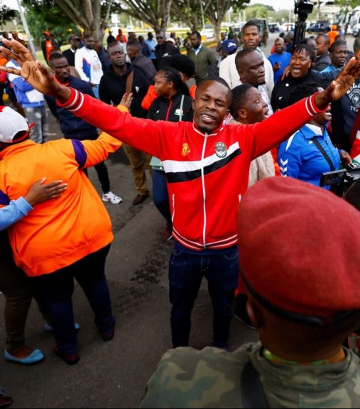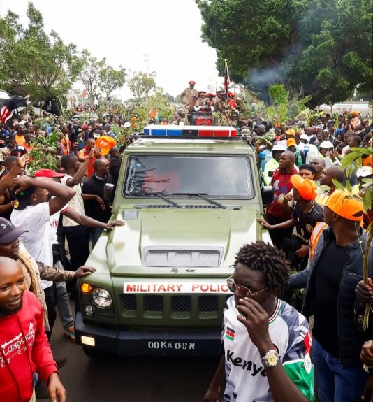 As the casket entered the stadium in a ceremonial military procession, mourners broke into chants, whistles, and songs. Many shouted the Swahili slogan “Raila usilale, bado mapambano” — meaning “Raila, don’t sleep, the struggle is not over” — in a symbolic appeal for his enduring spirit of resistance.